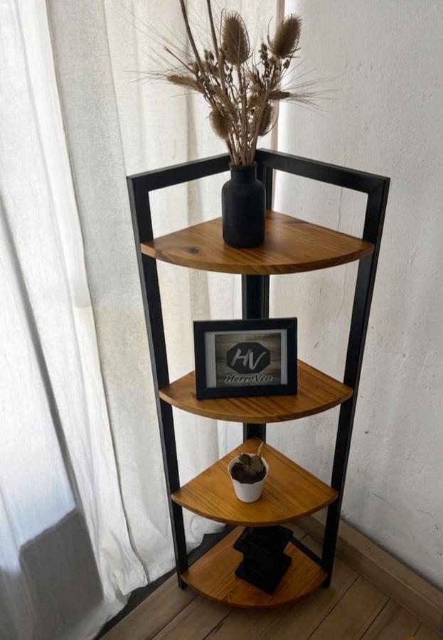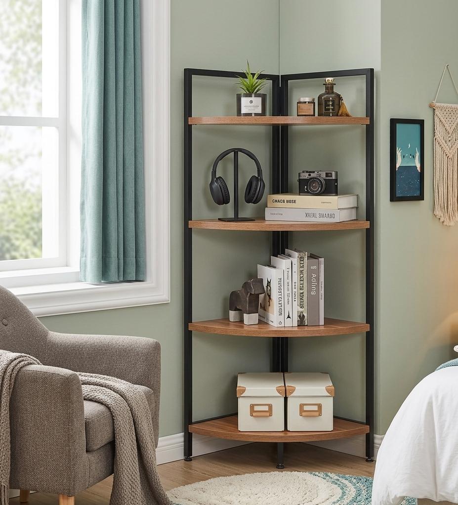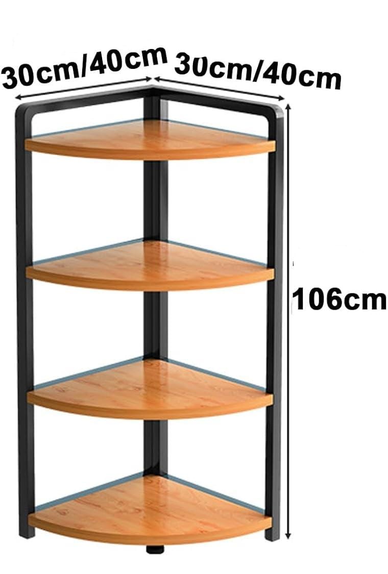 Étagère de rangement d’angle en bois et fer à 4 Niveaux